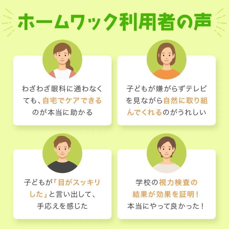 春の検眼で娘の視力低下を知り、夏休みの間に少しでも改善できればとホームワックを試しました。 タブレット学習や読書の合間に短時間でできるので無理なく続けられ、ここ最近、遠くが少しクリアに見えると本人も自覚しています。 夏休みをきっかけに視力ケアの習慣ができ、本当に良かったと思います。
