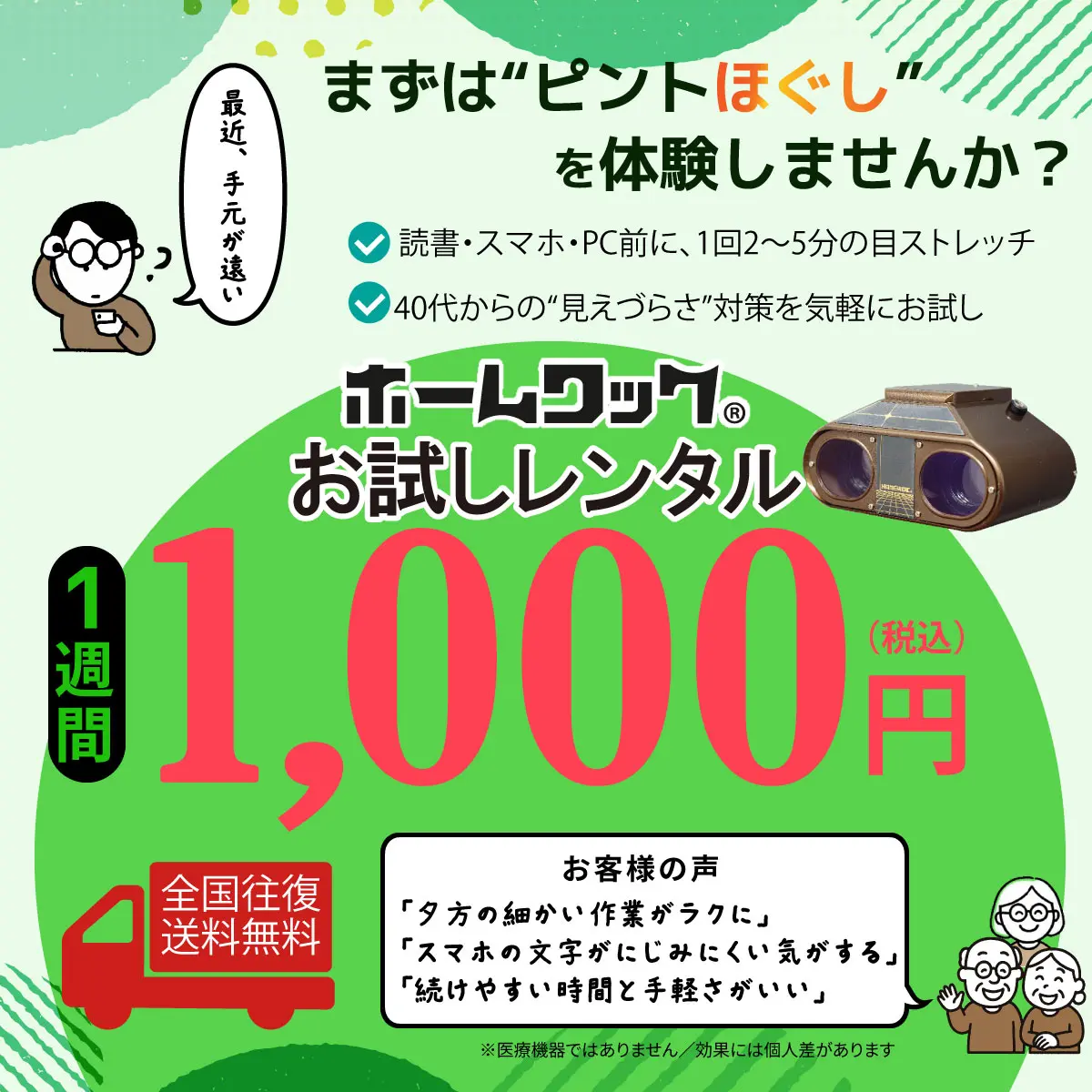 ホームワック 老眼 ピント ストレッチ ホームワック ピントフレッシュ 遠近 アイストレッチ ケア 仕事 趣味 当店限定価格 おすすめ バンドル対象商品 通常価格 ¥ 97,700 のところ 販売価格 ¥ 62,799 税込 カートに入れる お気に入りに登録する