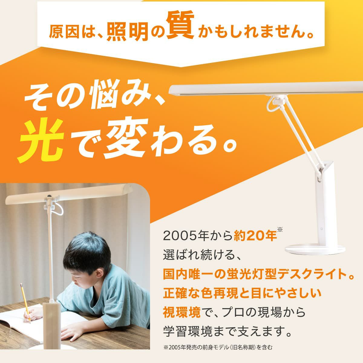 他の画像を見る おすすめ バンドル対象商品 国内唯一の蛍光灯型デスクライト デスクライト 目に優しい ジェントライト ベース クランプ 2Way 学習机 子供 蛍光灯タイプ デスクスタンド スタディライト ビタミンD エリート 4.83 通常価格 ¥ 34,980 のところ 販売価格 ¥ 31,482 税込 お気に入りに登録する