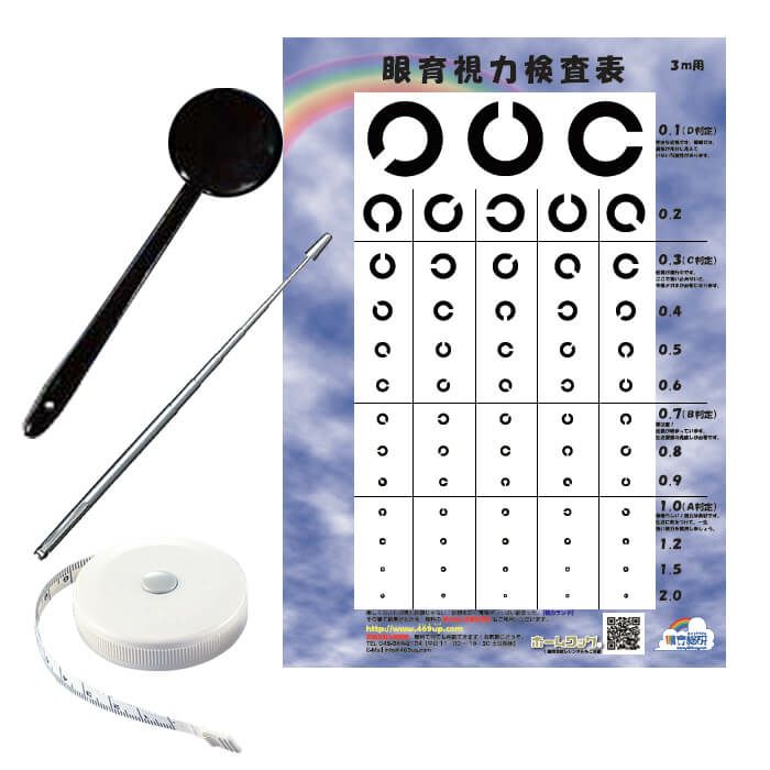 視力検査表 視力検査 視力検査キット 検眼表1枚セット 遮眼子 指示棒 メジャー 取扱説明書 近視 視力低下 早期発見 視力回復