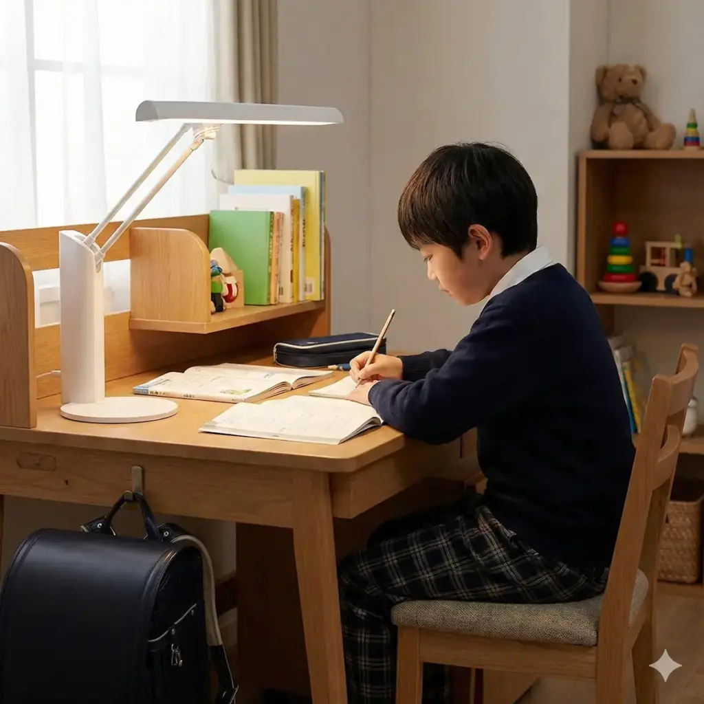 学習机で目に優しい環境を整えるには、部屋の照明だけに頼らず、手元の光を整えることがポイントになります。