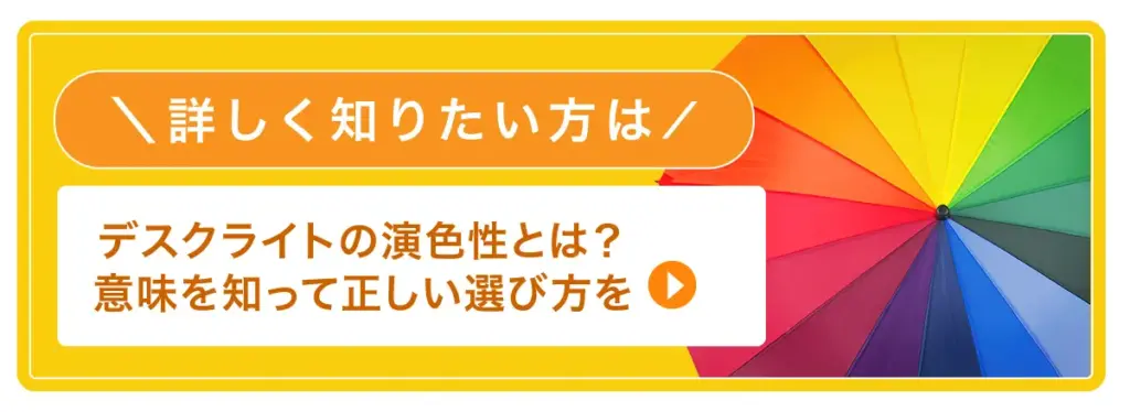学習用のデスクライトでは、この数値が「Ra85以上」であることが一つの目安となります。