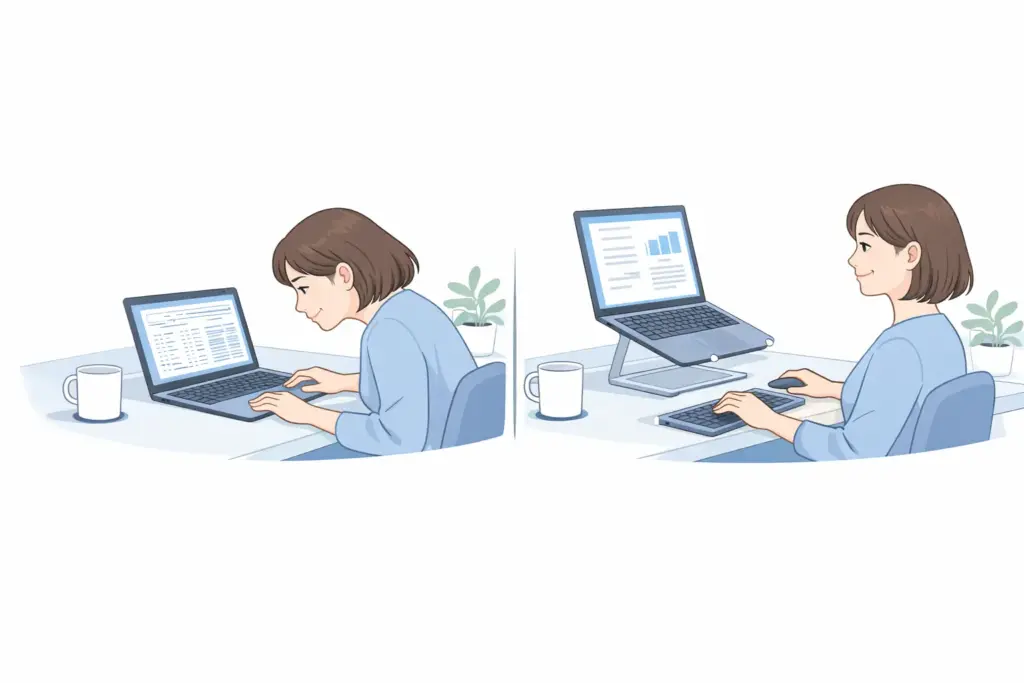 毎日数時間以上使うなら、まずはノートPCスタンド+外付けキーボードから始めると変化を感じやすくなります。