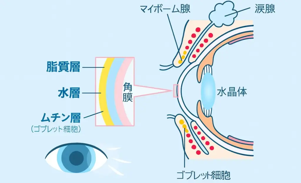 その結果、涙液が目の表面に十分に広がりにくくなり、乾きやすさにつながると考えられています。